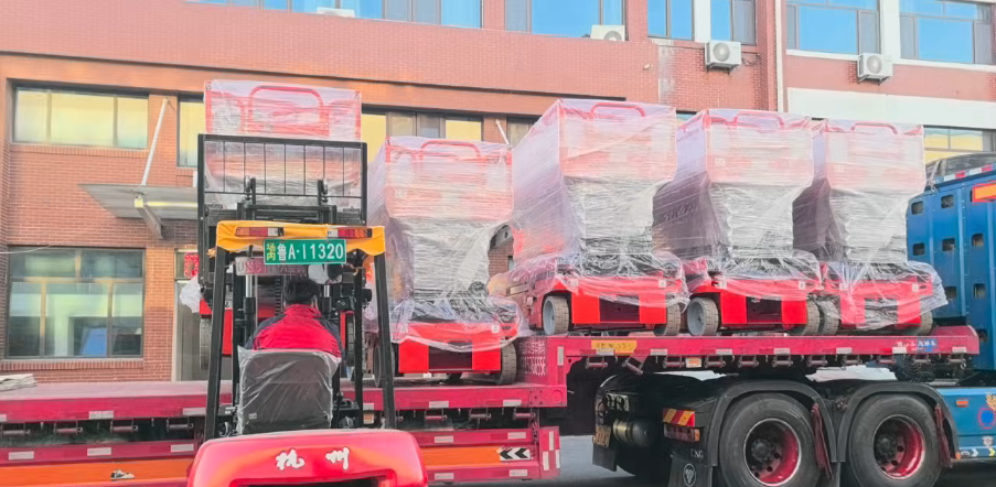 山東升降機廠家6位“高空金剛”——全新全自行剪叉式升降平臺,已完成所有“戰前準備”,身姿挺拔,威風凜凜,正式裝車發貨啦!