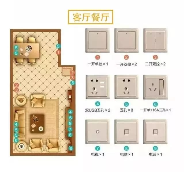 首先,我們來看看全屋開關插座的數量。一般來說,一個標準的三室兩廳的房子,至少需要以下數量的開關插座: