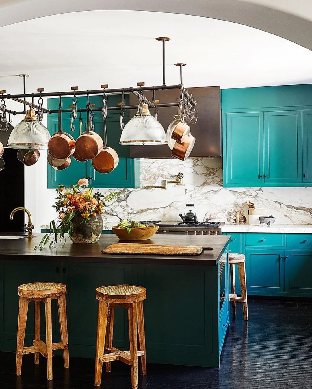 木質元素主導的餐廚區域,實現了肯豆心中“寧靜西班牙混合農舍風情”的理想畫面。她坦言這里是使用頻率最高的角落之一,常與好友在此談心,感受安心時光。柚木餐凳出自建筑大師Pierre Jeanneret之手,搭配一張土耳其古董地毯,新舊對話間,空間更添深度。