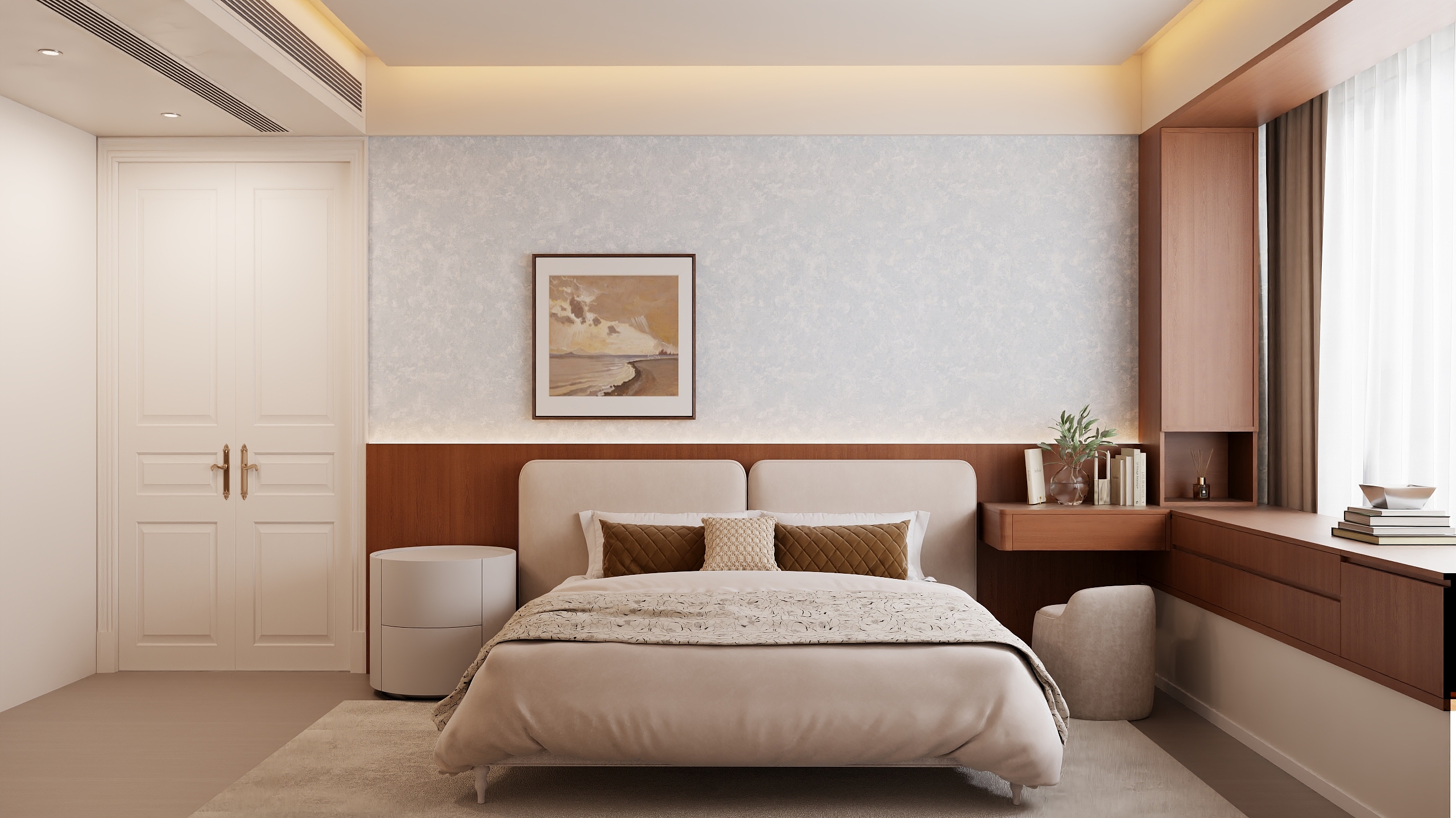 我們倡導 “設(shè)計先行,軟硬一體” 。在設(shè)計初期,就將定制柜的立面與軟裝的色板、材質(zhì)樣本進行整體搭配模擬,確保從色彩、材質(zhì)到比例的統(tǒng)一。我們的全案團隊會統(tǒng)籌從硬裝施工到軟裝定制的全流程,確保每一件定制產(chǎn)品在正確的時間節(jié)點測量、生產(chǎn)、安裝,避免銜接失誤,讓您在杭州的家,從骨骼到肌膚都完美契合。