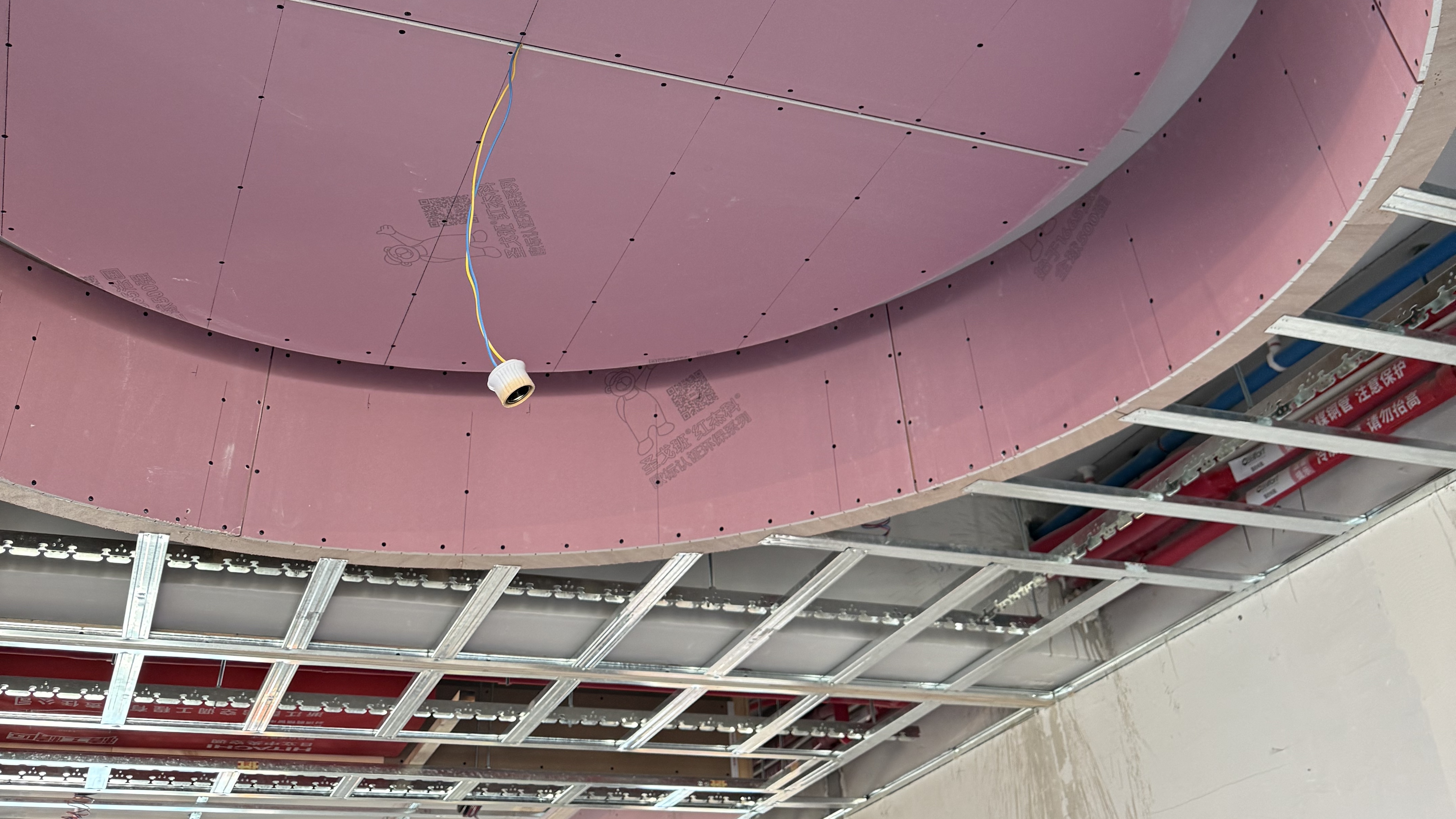 f. 石膏板吊頂轉角處鋪設網格布或鋁箔帶,降低開裂風險。