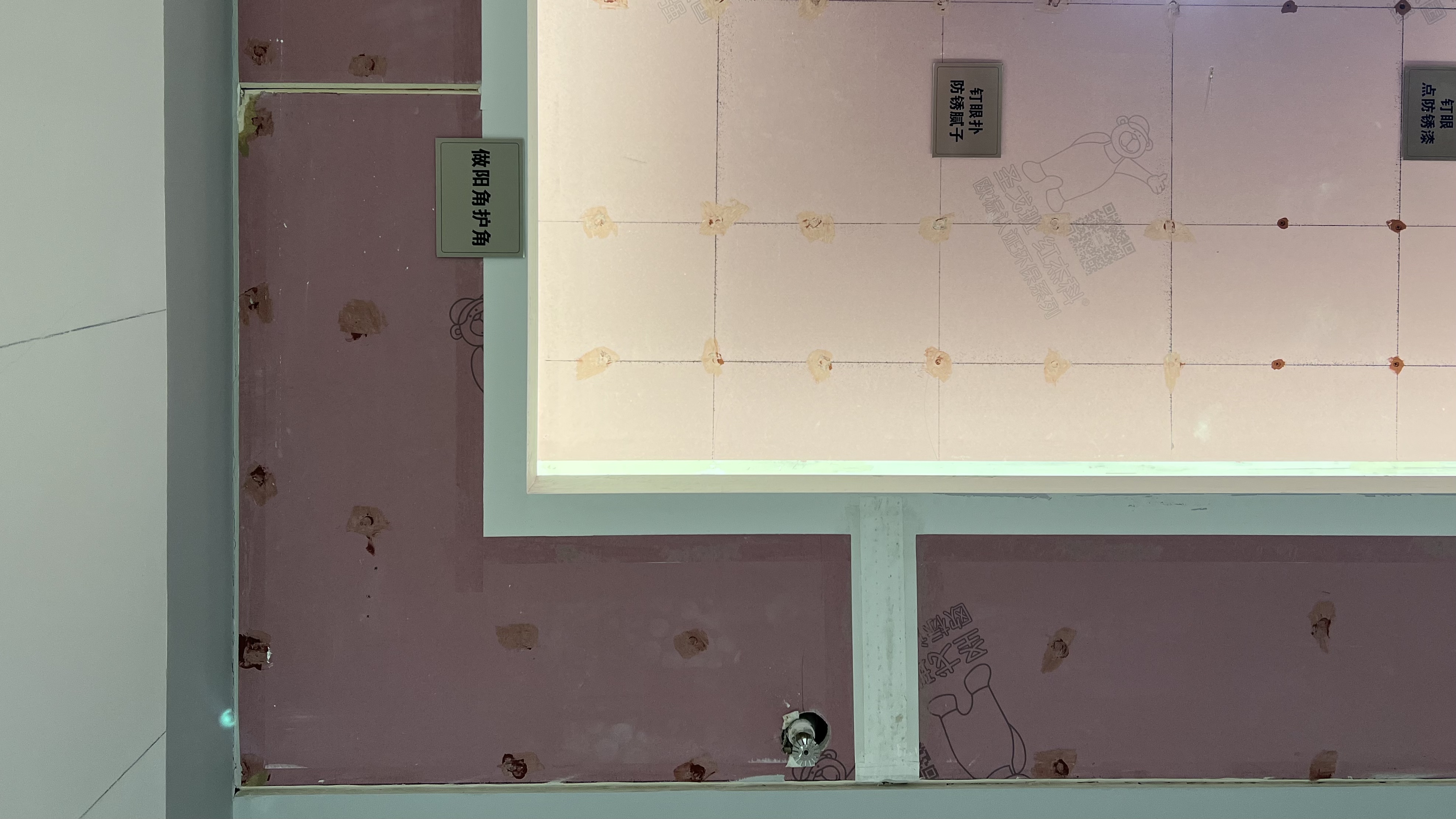 e. 所有石膏板釘眼點涂防銹漆,避免后期銹跡滲出。