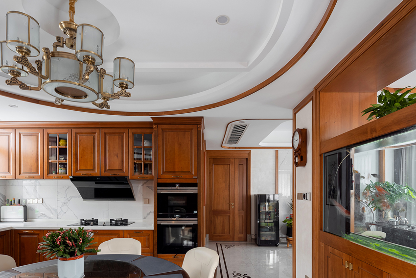 6、廚房裝修時,不要選擇木質,木質地板難打理,養護起來也很麻煩,而且廚房與火水打交道,出于安全考慮,最好不要選擇木質地板,如果使用煤氣罐,最好設計一個煤氣罐位置。