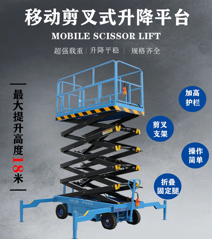 1、剪叉式升降機采用液壓傳動方式進行高空作業,沒有噪音零污染!